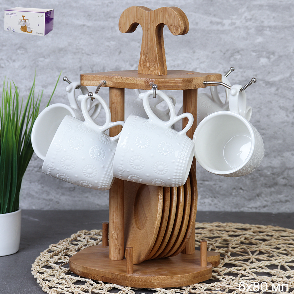 Кофейный набор 12 предметов 80 мл / MJ-125 /уп 12/ на деревянной подставке