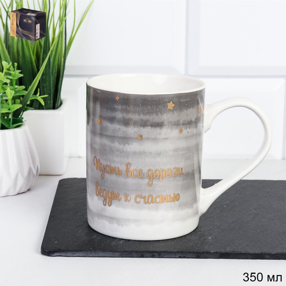 Кружка в подарочной упаковке. "Пусть все дороги ведут к счастью!"