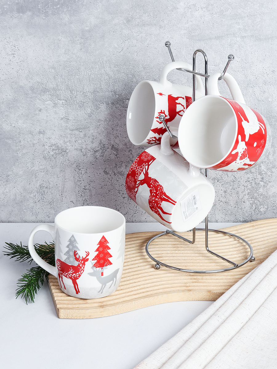 Кружка 4 штуки на металлстенде 380 мл / H012 /кружка новогодняя/ в гофрокоробе
