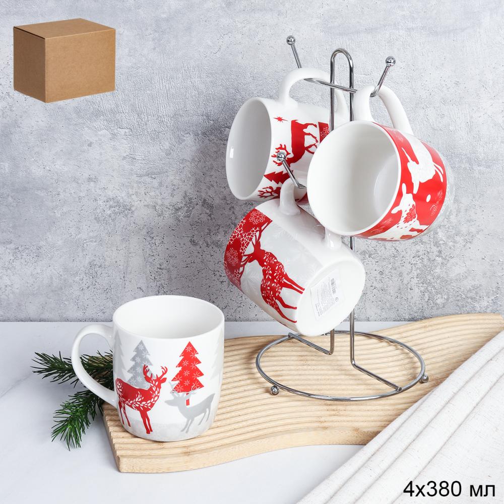 Кружка 4 штуки на металлстенде 380 мл / H012 /кружка новогодняя/ в гофрокоробе/ АКЦИЯ