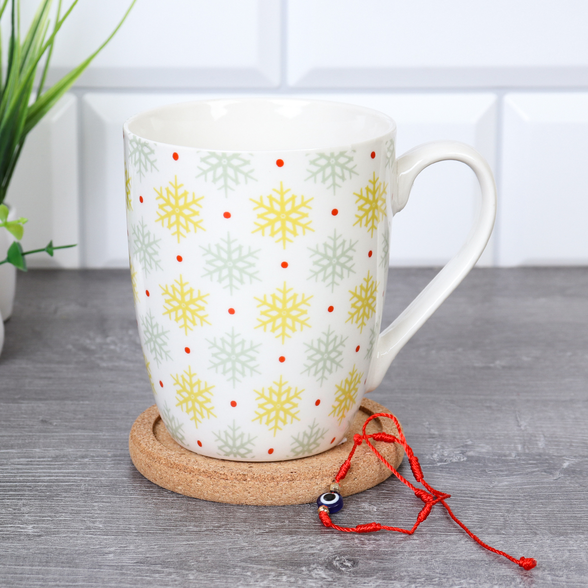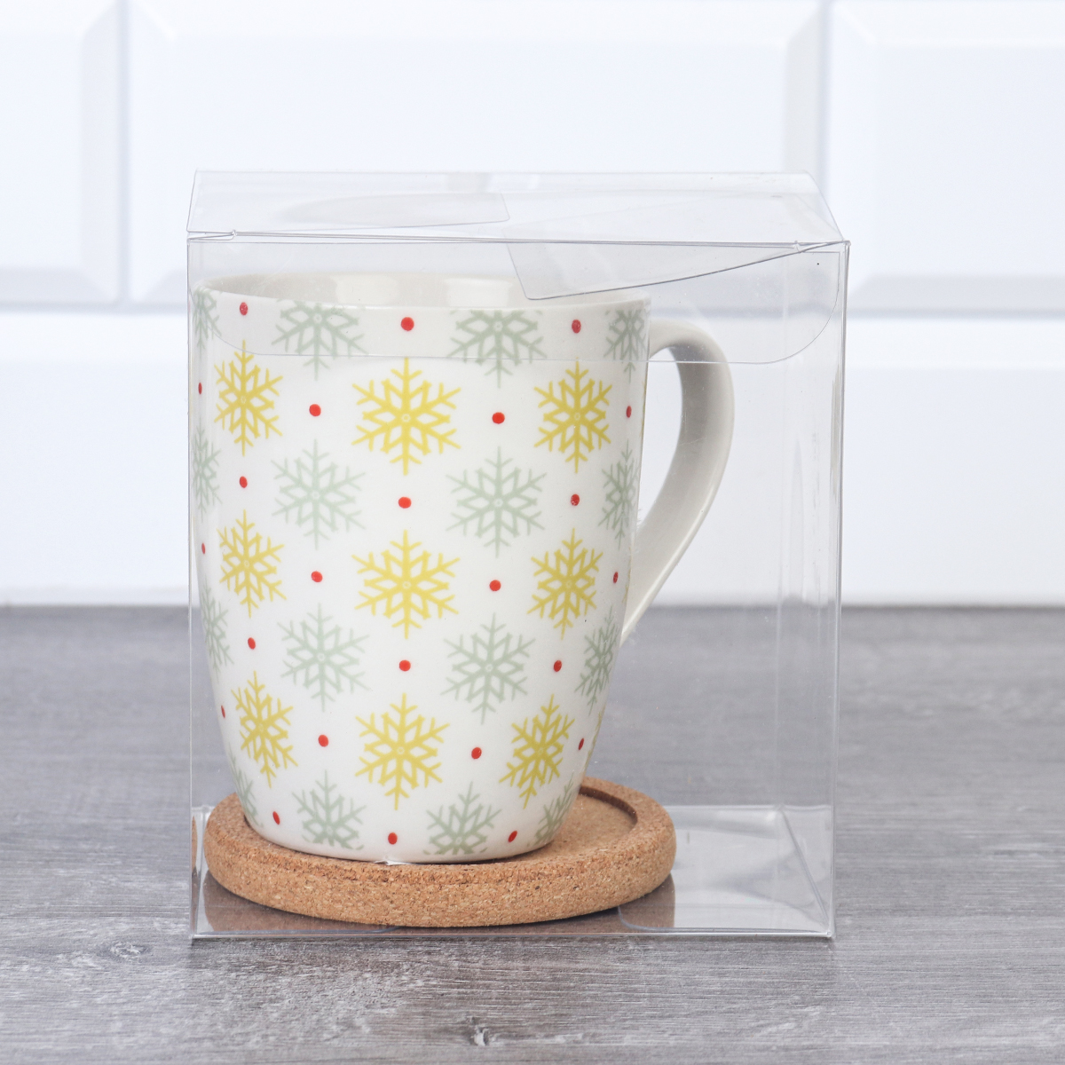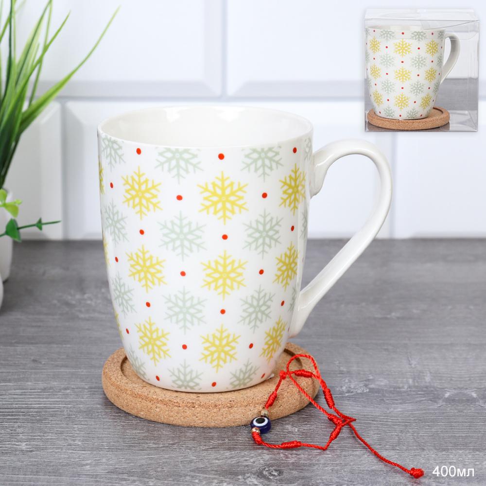 Подарочный набор Кружка 400 мл с подставкой под горячее / K5098/ Снежинки/ АКЦИЯ/новогодняя