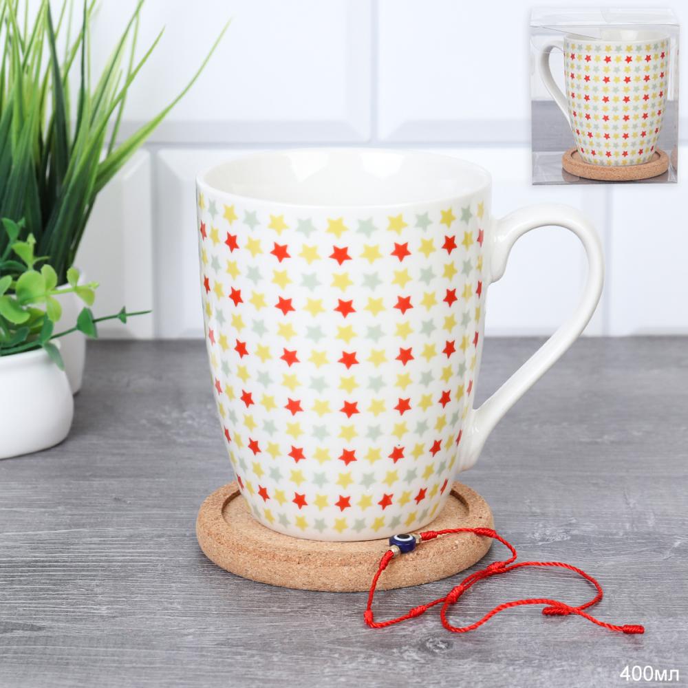 Подарочный набор Кружка 400 мл с подставкой под горячее / K5098/ Звездочки/ АКЦИЯ