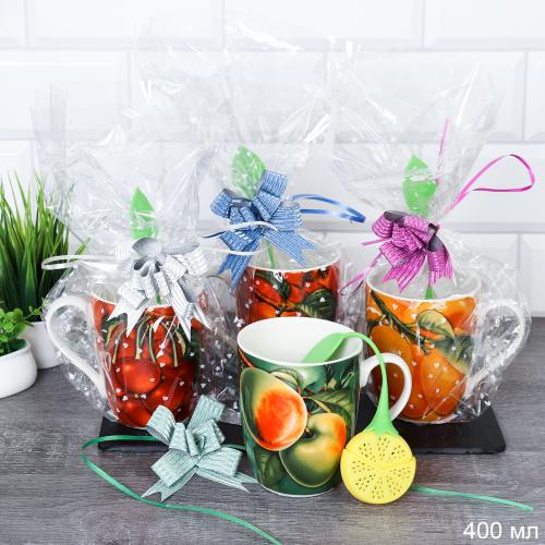 Подарочный набор Кружка 400 мл с ситечком силиконовым Фрукты / 4805-9/