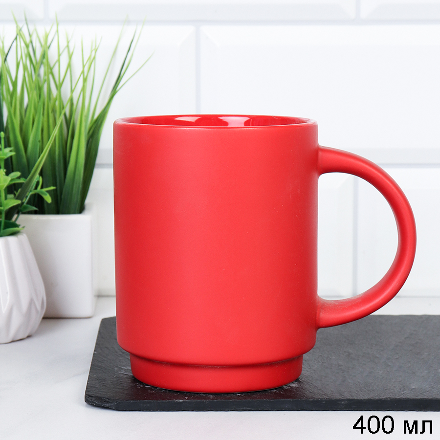 Кружка 400 мл Штабелируемая Красная / Q-244 /уп 48/ ПРОМО АКЦИЯ