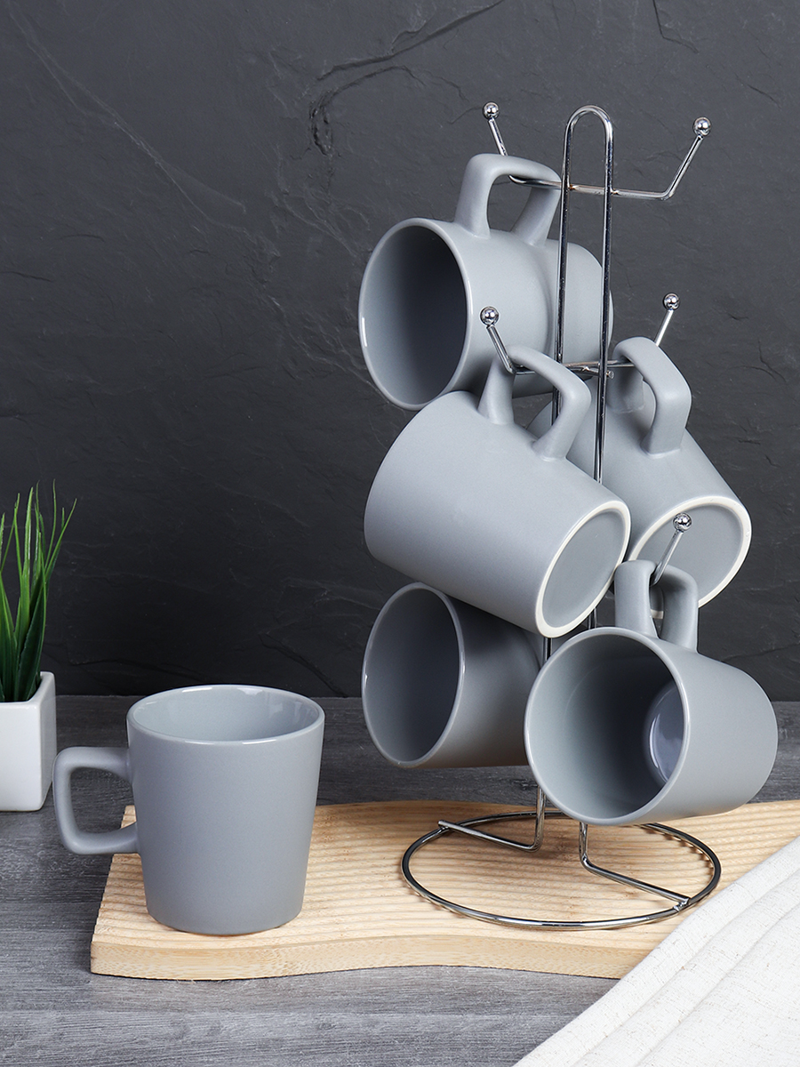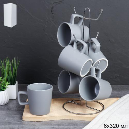 Кружка 6 штук на металлстенде 320 мл Серый / FR-779 / АКЦИЯ