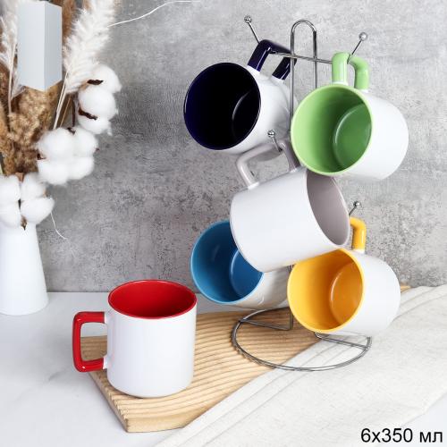 Кружка набор 6 штук на металлстенде 350 мл Классика / AK-01 /АКЦИЯ
