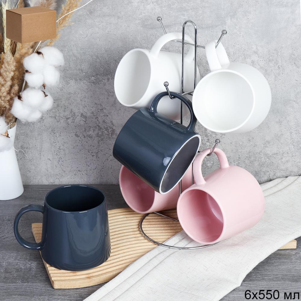 Кружка набор 6 штук на металлстенде 550 мл Трапеция / HQ-131/ АКЦИЯ
