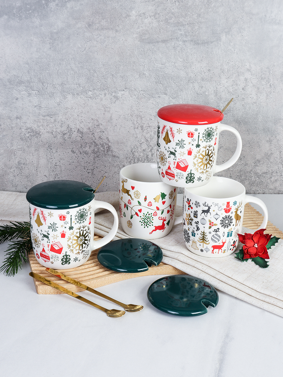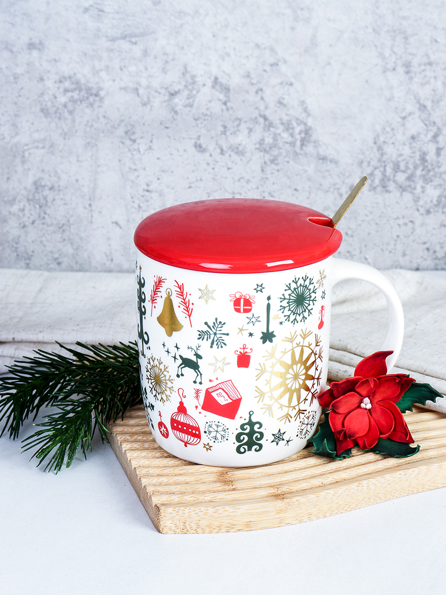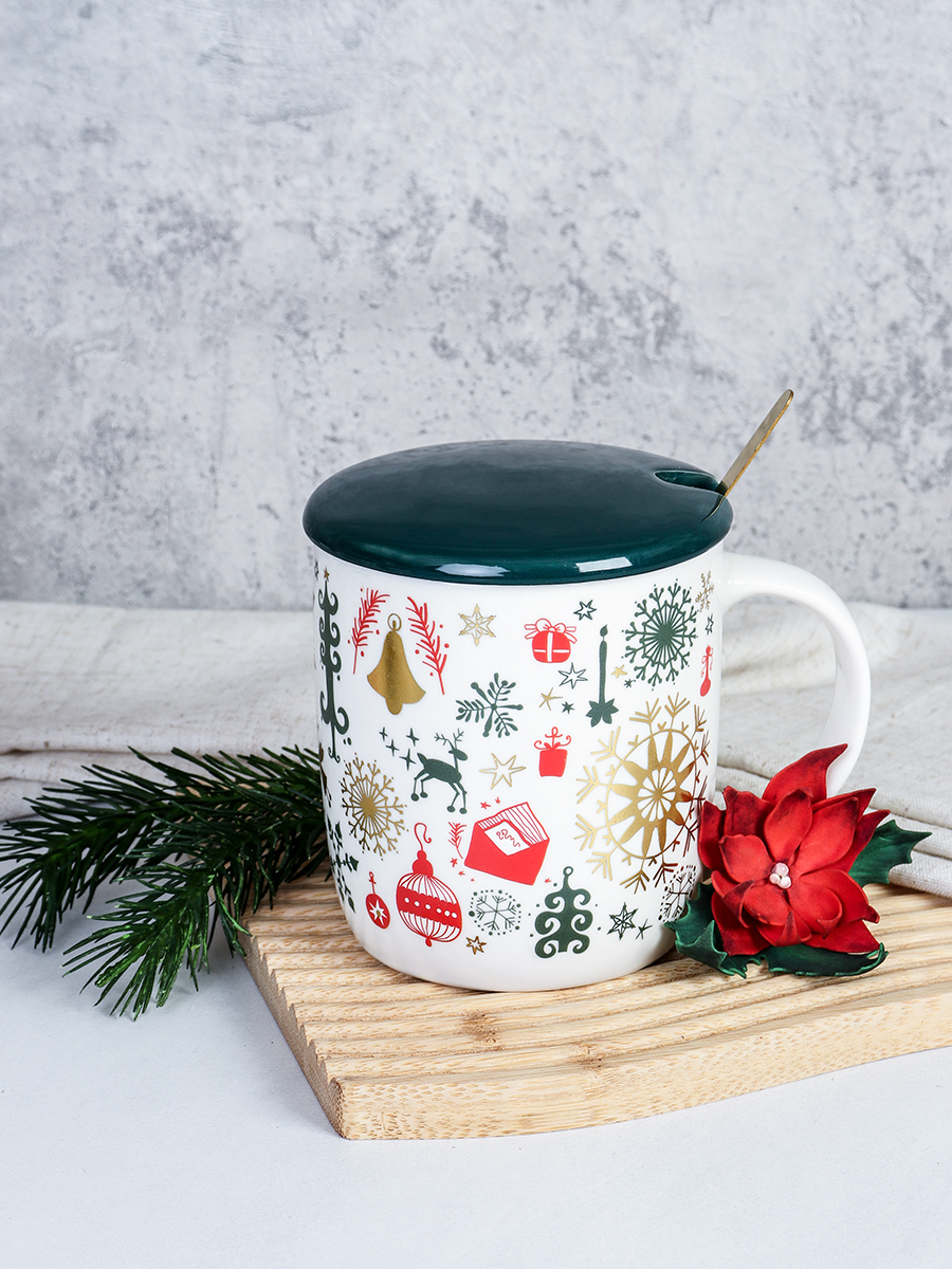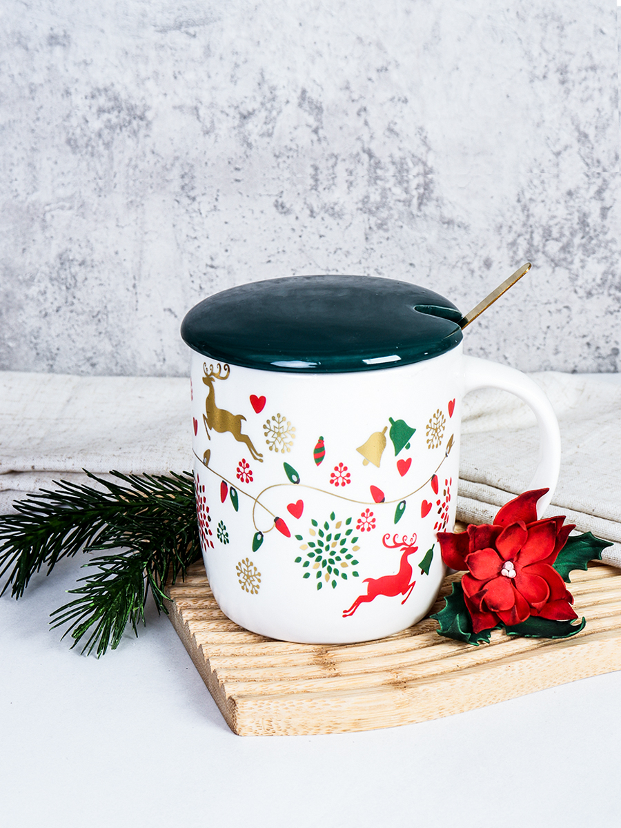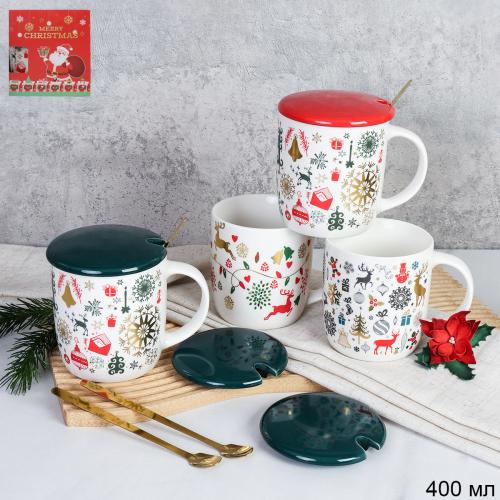 Кружка новогодняя с крышкой, ложка /400 мл/ HB-258 /уп 60/