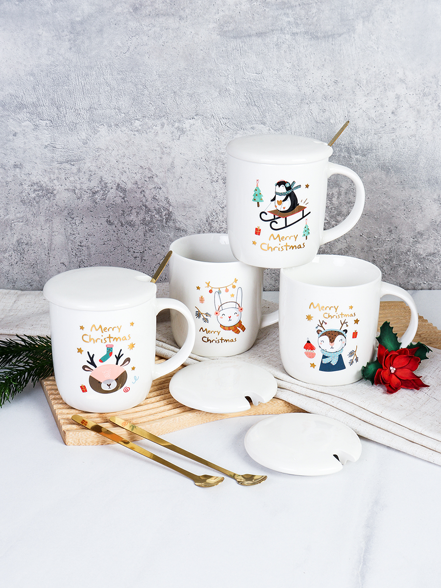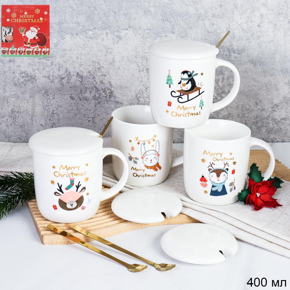 Кружка новогодняя с крышкой, ложка / HB-A2096 /уп 60/
