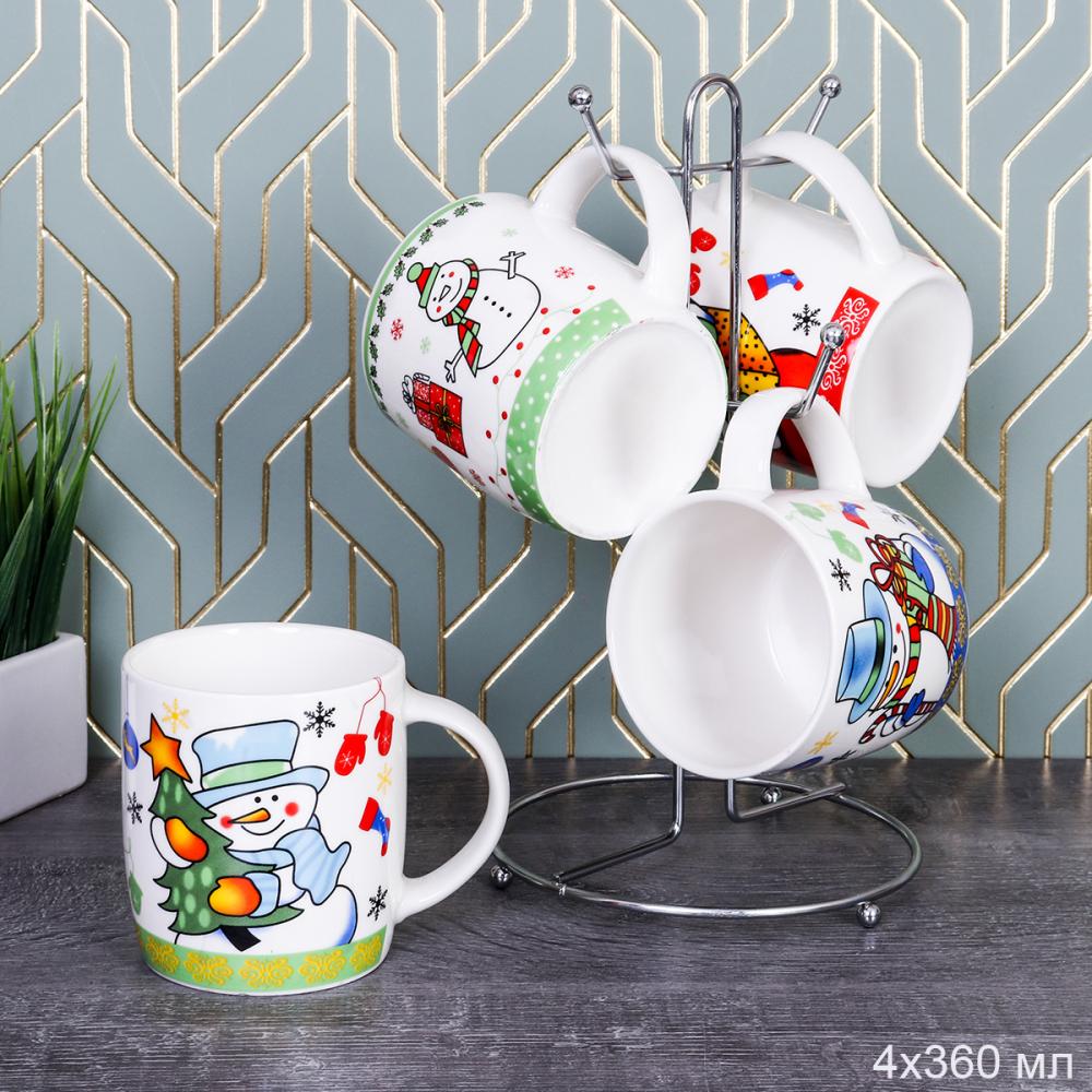 Кружка 4 штуки на металлстенде 360 мл / Q447 /кружка новогодняя
