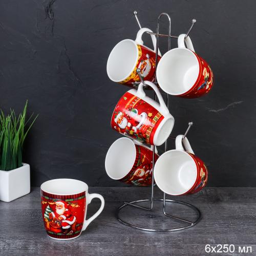 Кружка 6 штук на металлстенде 250 мл Новый год / FG604 / кружка новогодняя/ АКЦИЯ