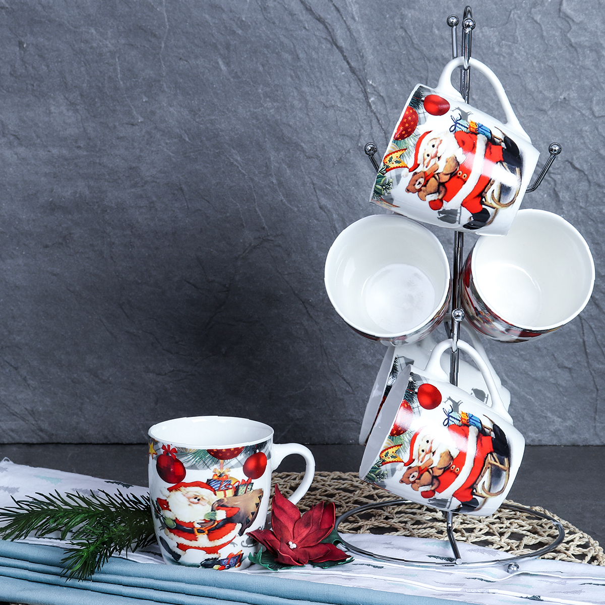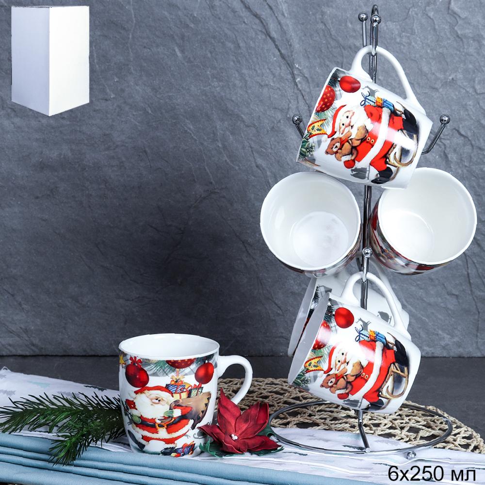 Кружка 6 штук на металлстенде 250 мл УПАКУЙ САМ / XP013 / кружка новогодняя