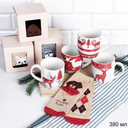 Подарочный набор Кружка новогодняя 380 мл+ носки / H012-2/ в подарочной упаковке /АКЦИЯ