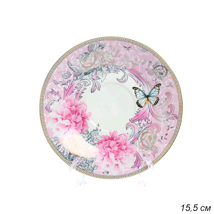 Блюдце 15,5 см Пионы розовые / LY-1545.1 /уп 8/ тонкостенный