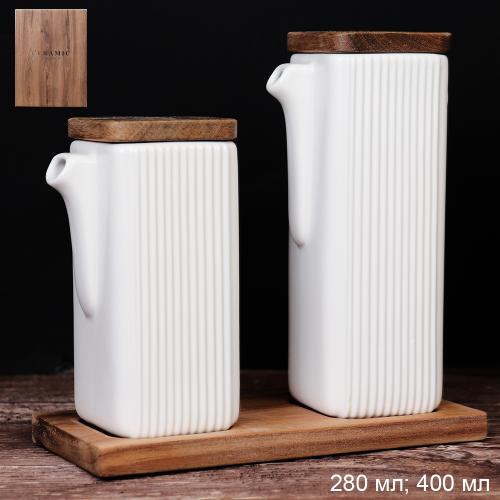 Кувшин соусник для жидких специй 2 штуки 400 мл 280 мл / I9003-white /уп 16/ на подставке