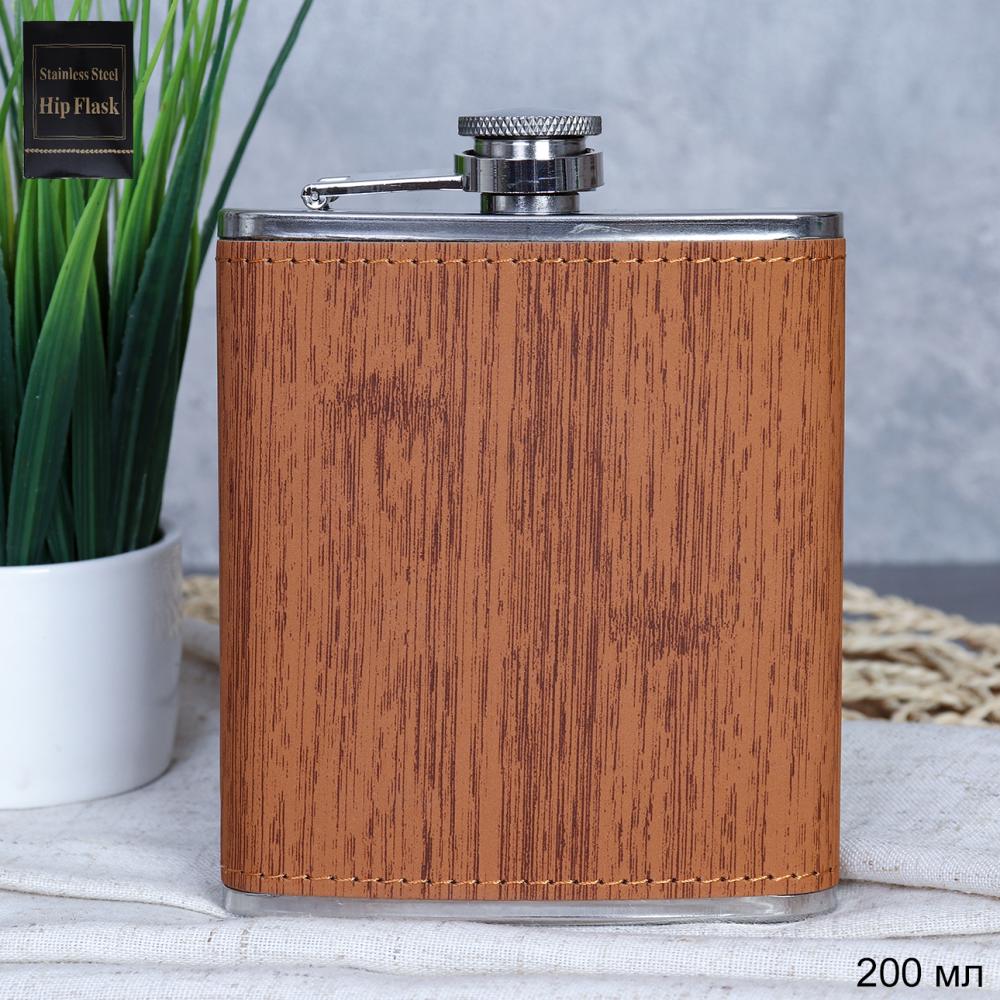 Фляжка 200 мл фактура дерево / FL-162 /уп 100/