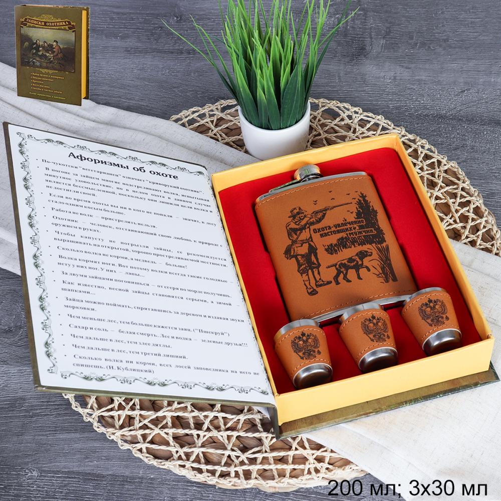 Набор подарочный Афоризмы об охоте фляжка 200 мл + 3 стопки 30 мл / FL-215 /уп 60/
