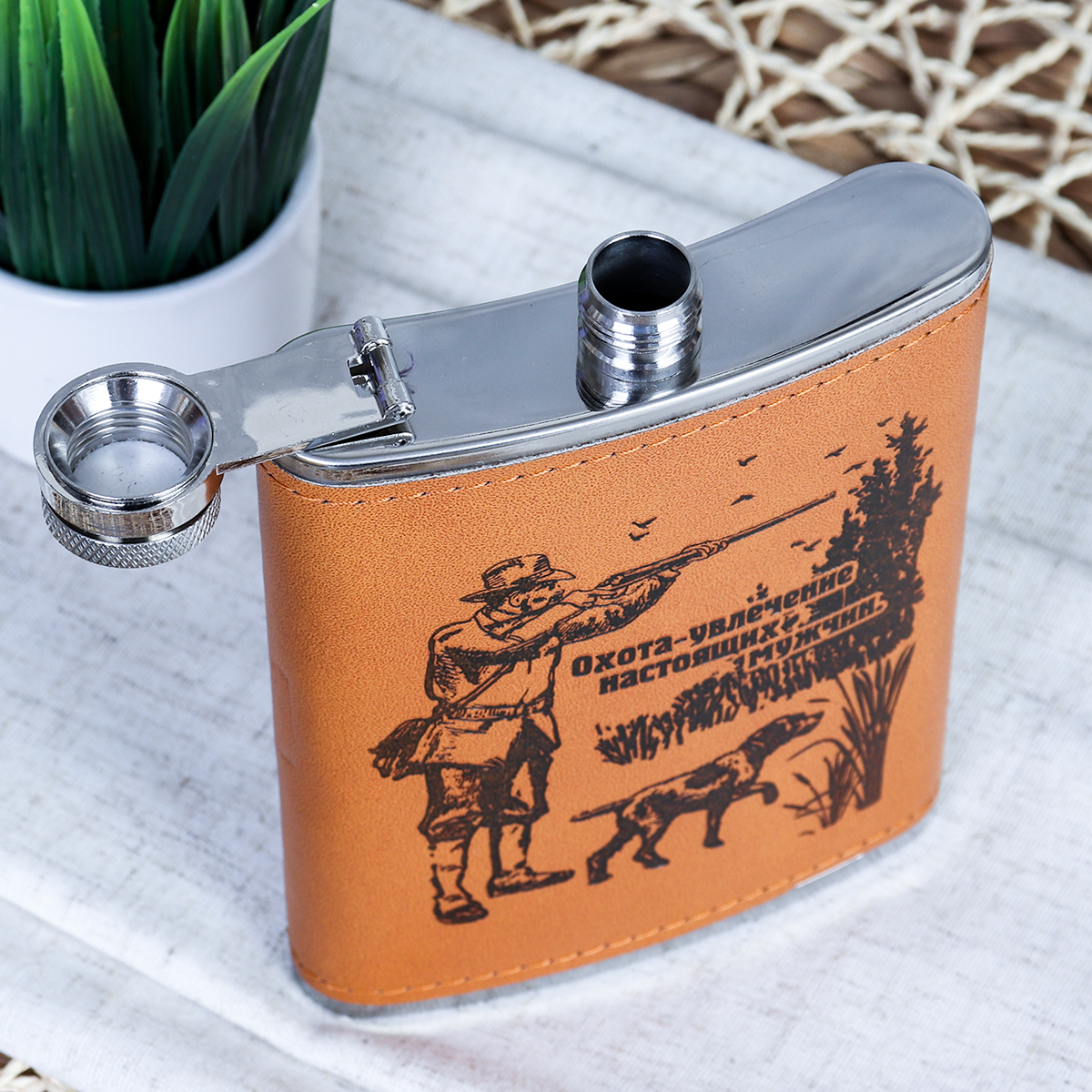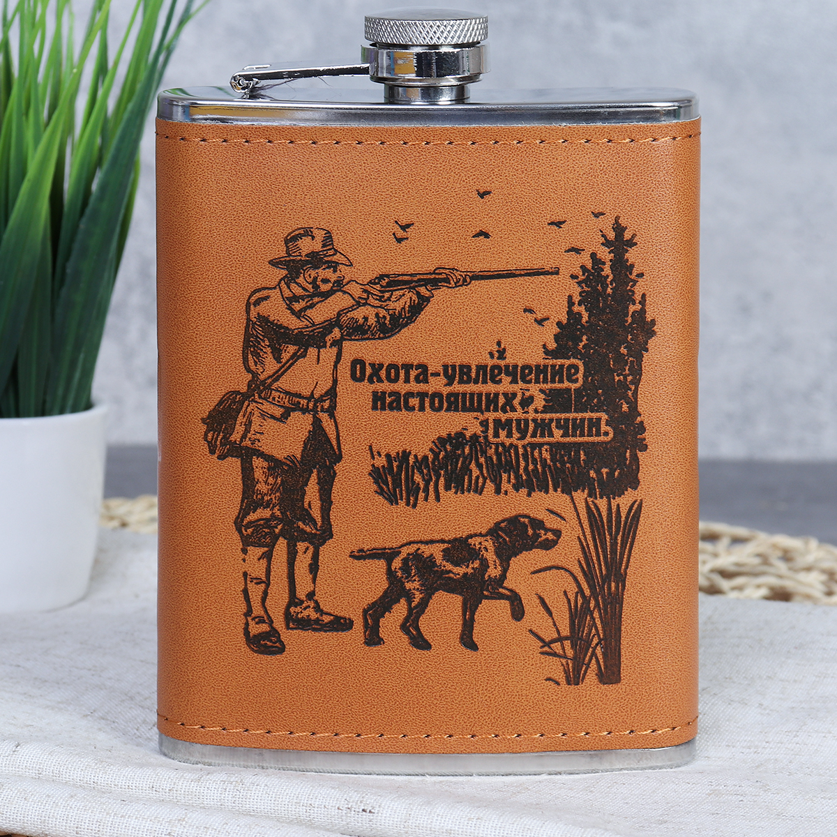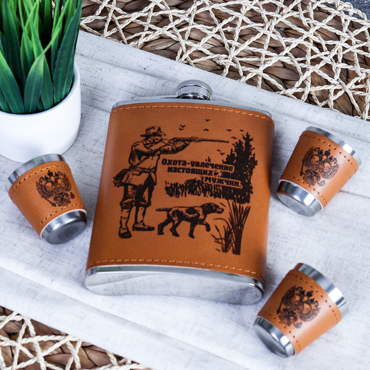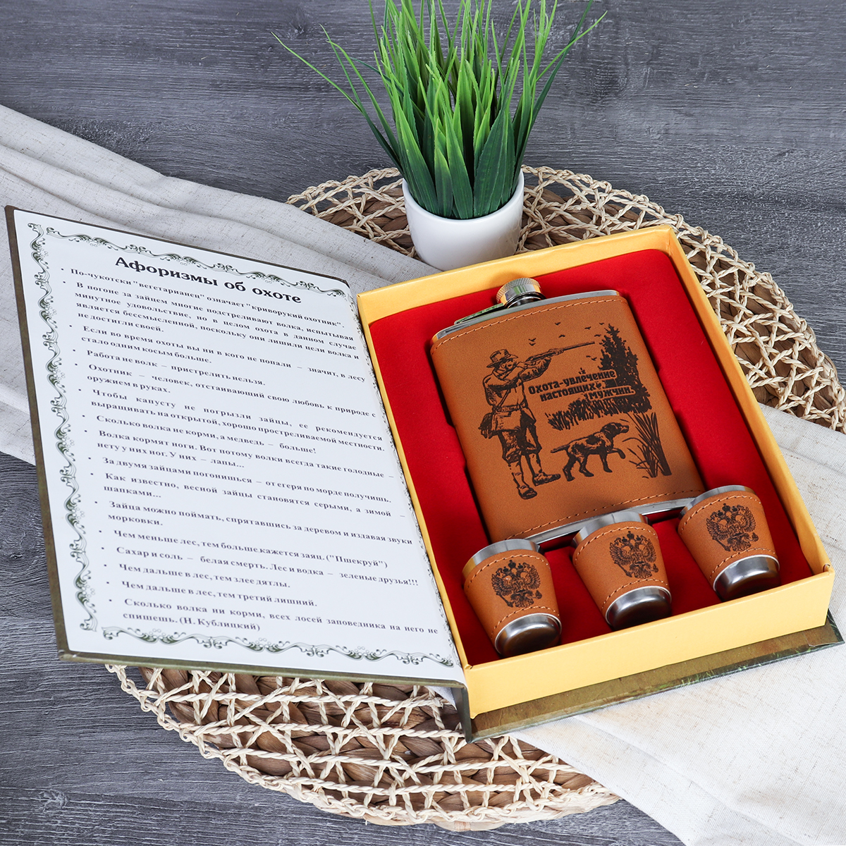 Набор подарочный Афоризмы об охоте фляжка + 3 стопки, в подарочной коробке.