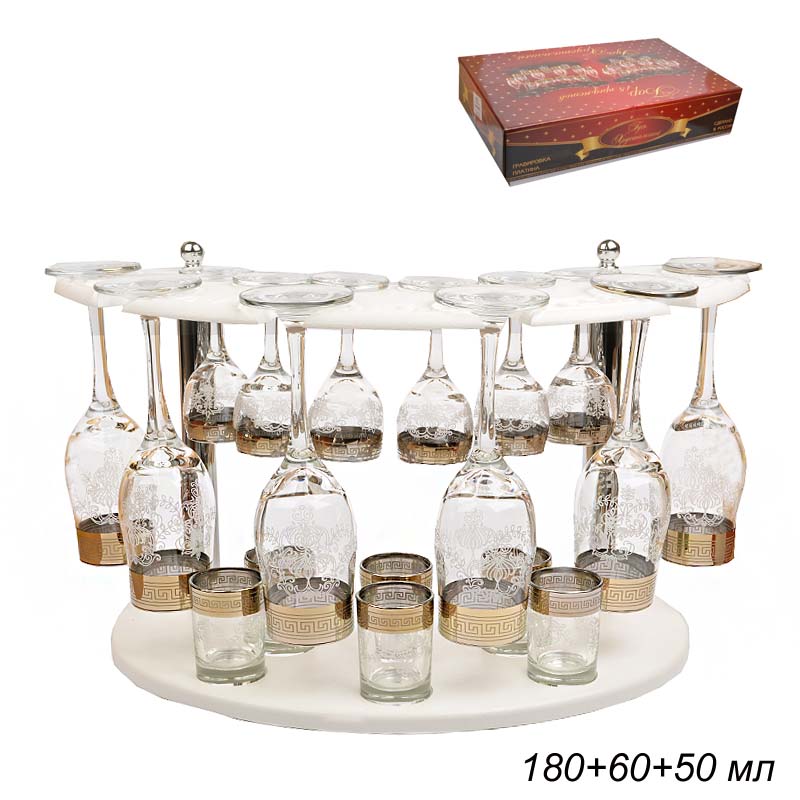 БАР набор для напитков 18 предметов Белый Барокко АКЦИЯ / B-O-GN-160-134-22 /уп 1/ 6 бокалов 180 мл +6 рюмок 60 мл +6 стопок 50 мл