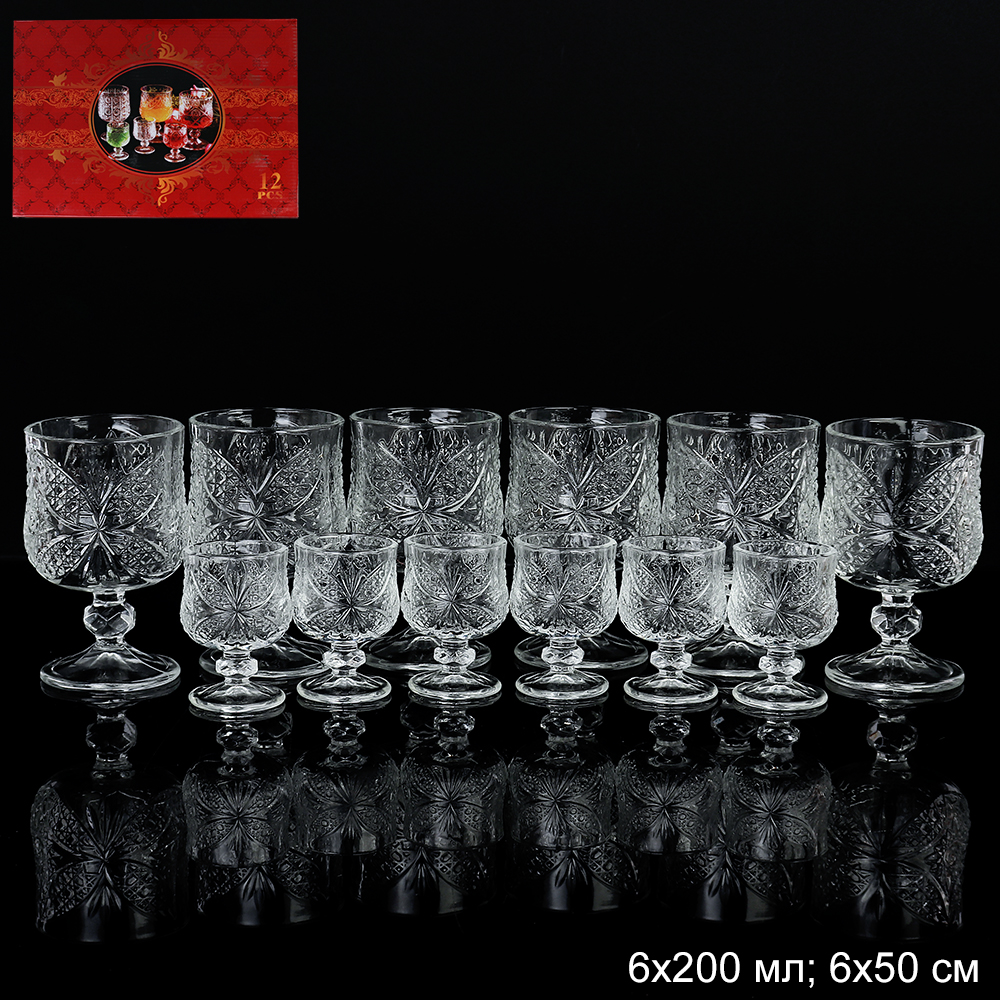 Бокал 200 мл и рюмка 50 мл 12 предметов Бабочка / HD-734 /уп 8/ подарочная коробка