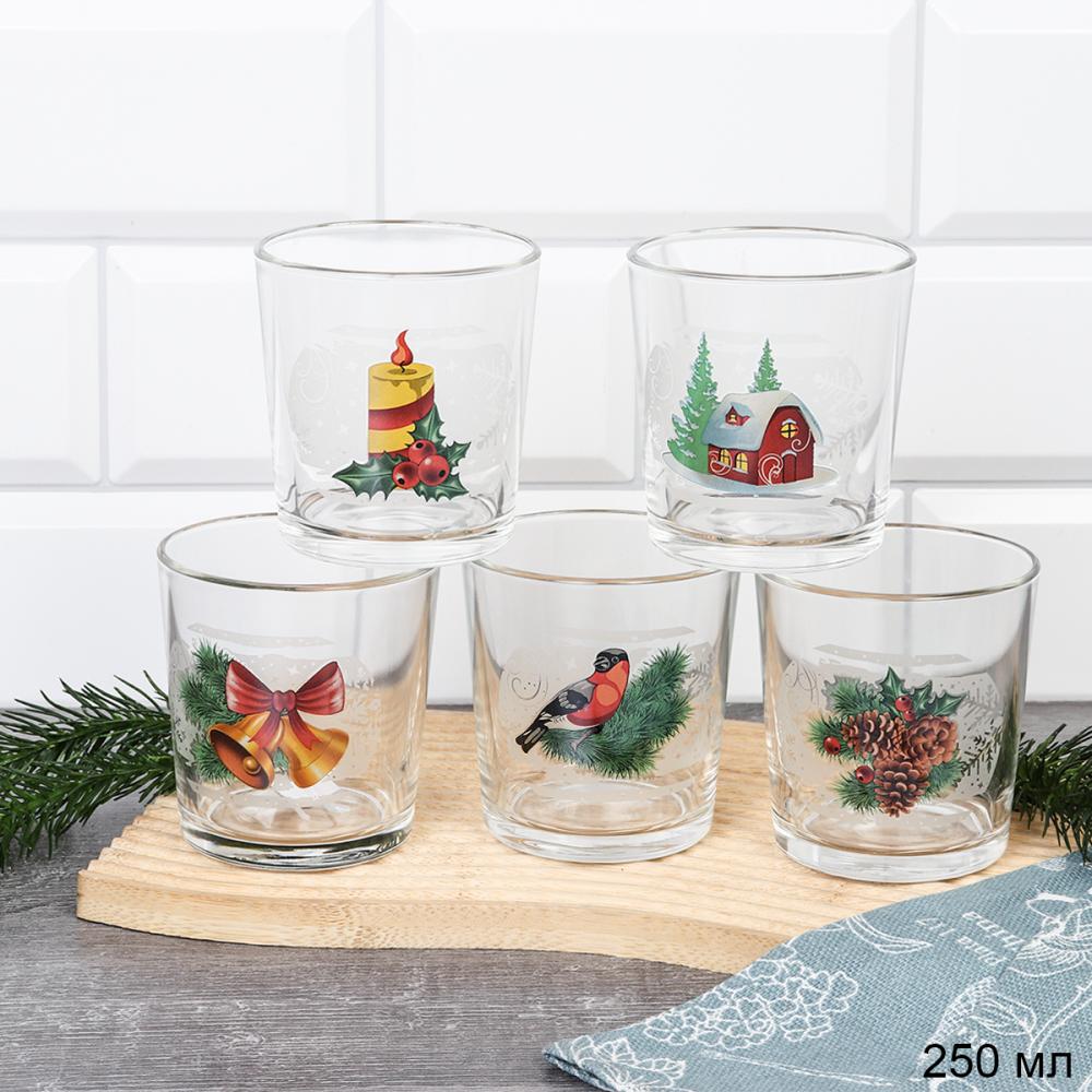 Стакан 250 мл "Зимние узоры" / Д048/133 /уп 6/ низкий Новогодний/ ШТУЧКА
