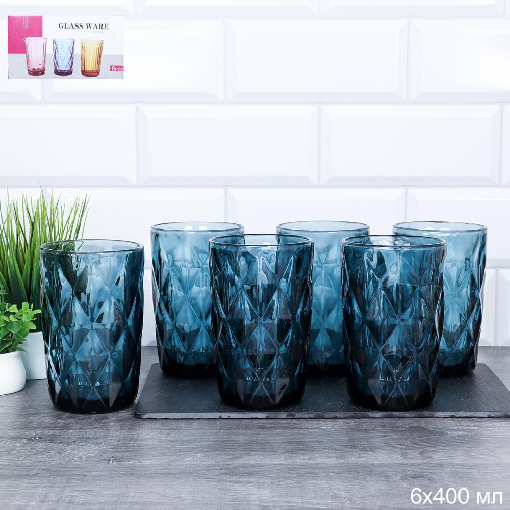 Стакан 6 штук 400 мл высокий / KF-033-3 /уп 8/ синий
