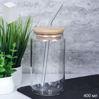Стакан для смузи с трубочкой бамбуковая крышка 400 мл / LCWB10212 /уп 96/