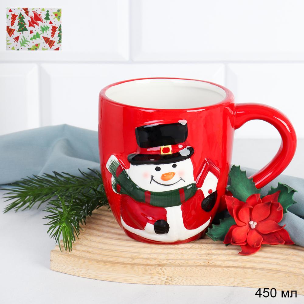Кружка 450 мл Снеговик / NX249376-8 /уп 48/ новогодняя/подарочная упаковка