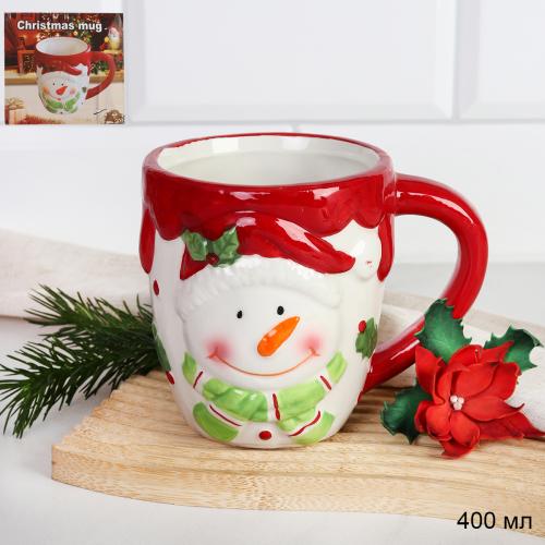 Кружка 400 мл Снеговик / YJ3002В /уп 48/ новогодняя/подарочная упаковка