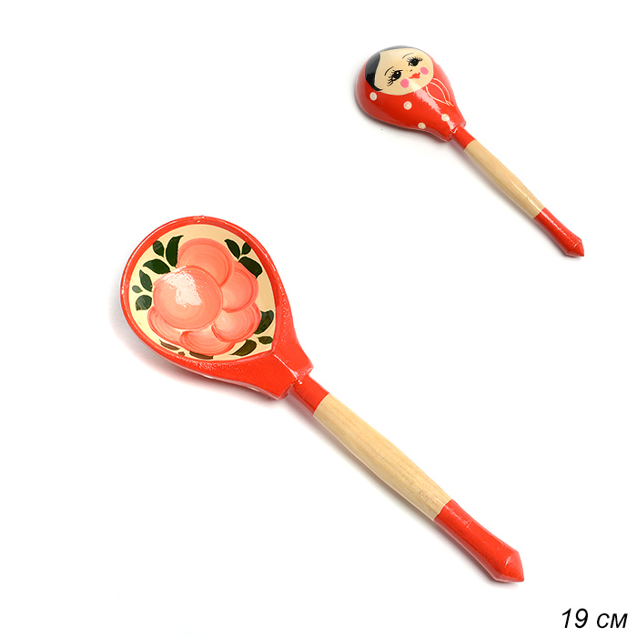 Ложка деревянная полубаская роспись Матрешка / 6601 /уп 1/