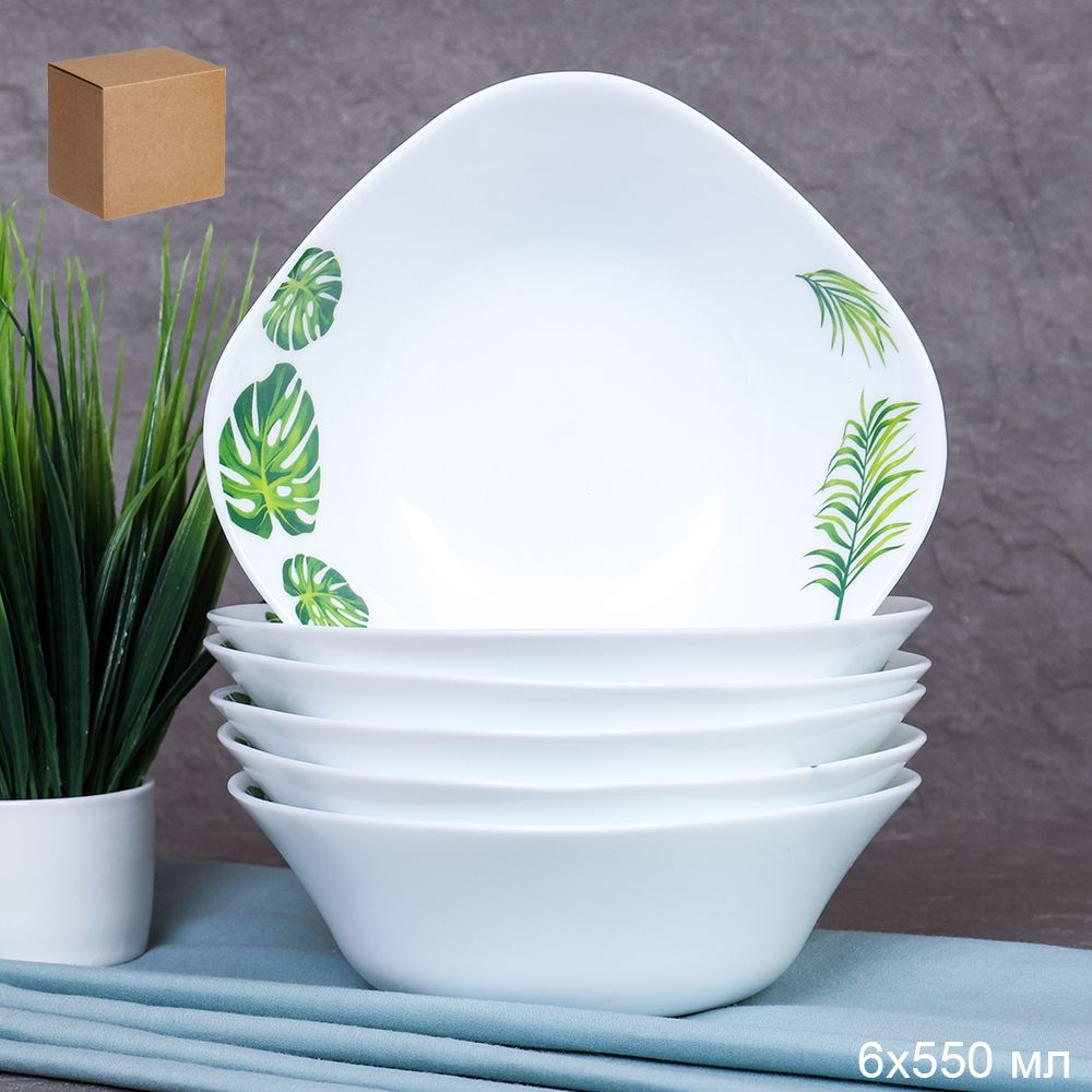 Набор суповых квадратных тарелок 6 штук 550 мл 152 мм / FSW-65 (7242) Монстера