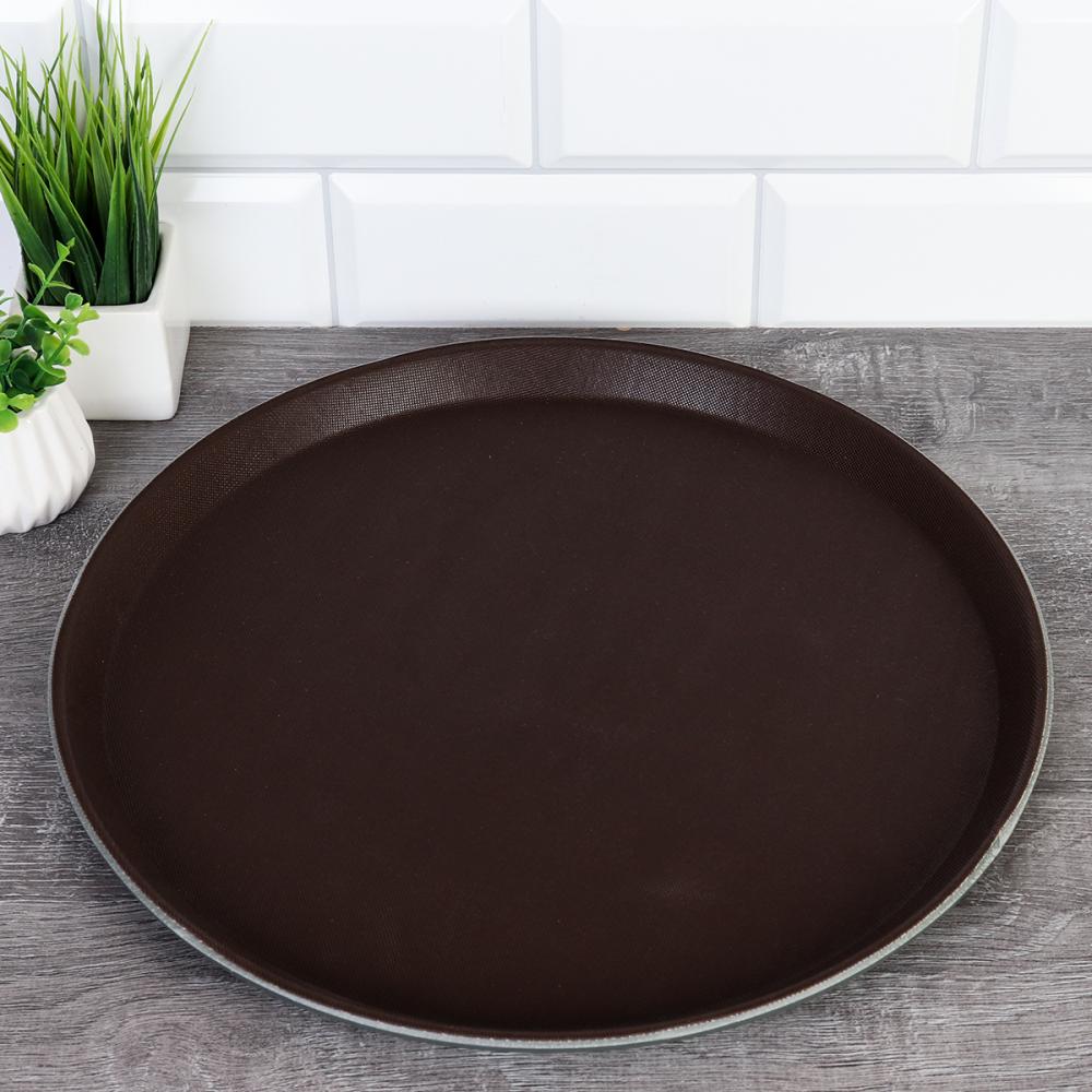 Поднос антискользящий 35 см круглый прорезиненая поверхность / NTSK35 /уп 25/коричневый