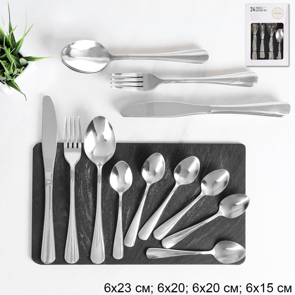 Столовые приборы 24 предмета в п/у/ KT24-101001-SILVER /уп 12/ в подарочной коробке
