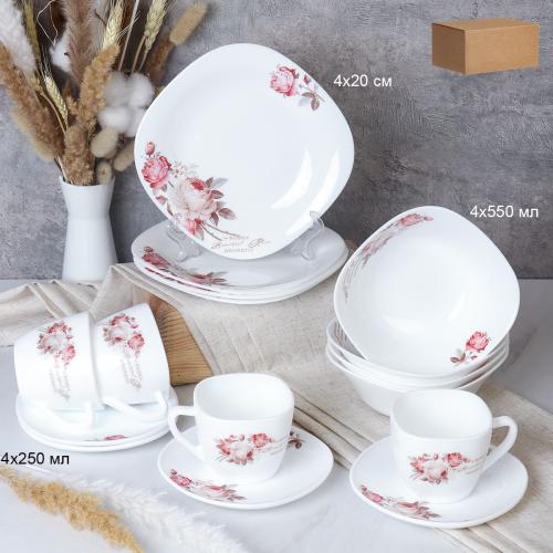 Столовый набор 16 предметов на 4 персоны квадратный / 16/86220/XN (6916) /уп 2/ Чайная роза