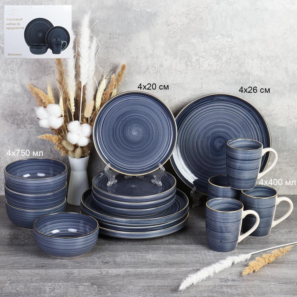 Столовый набор 16 предметов Крапинка синий / WHP24-0155B /уп 2/ АКЦИЯ