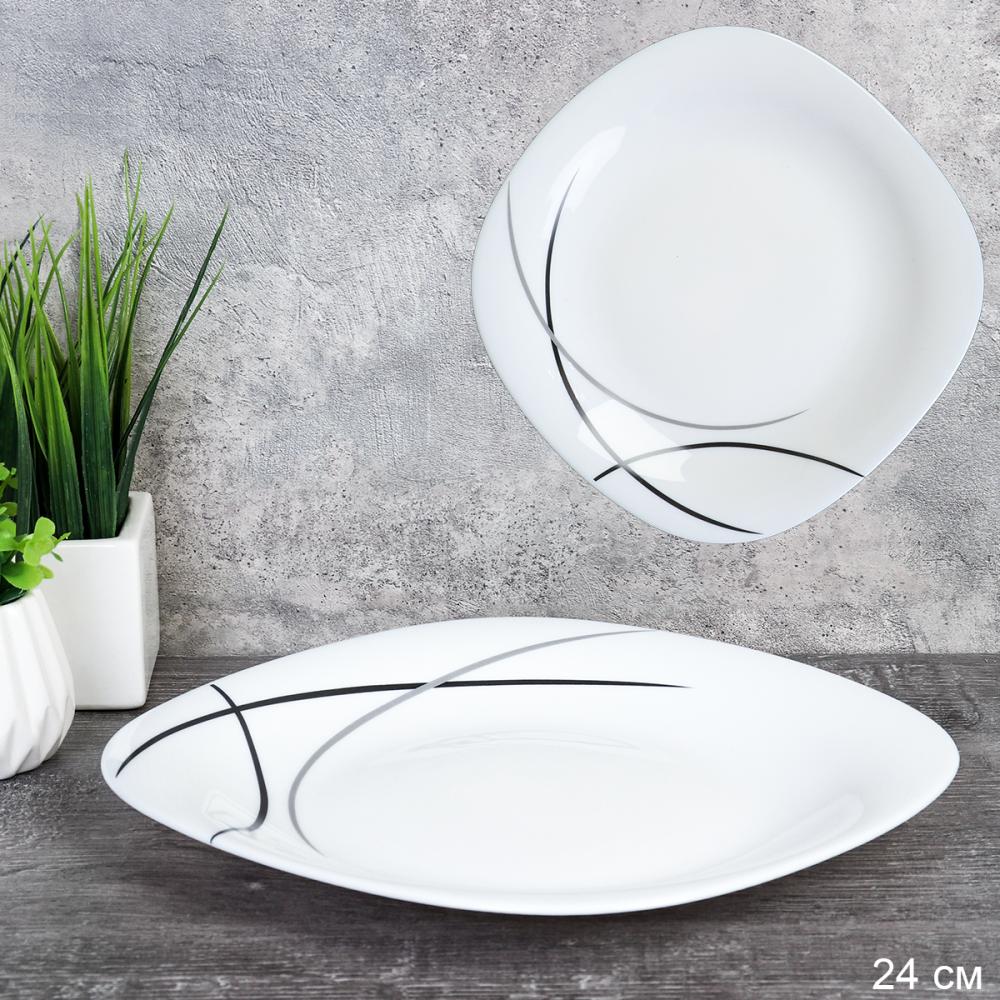 Тарелка квадратная 240 мм / GRAY-SQ19/9586595(7267-2) /уп 6/ Полосы классика