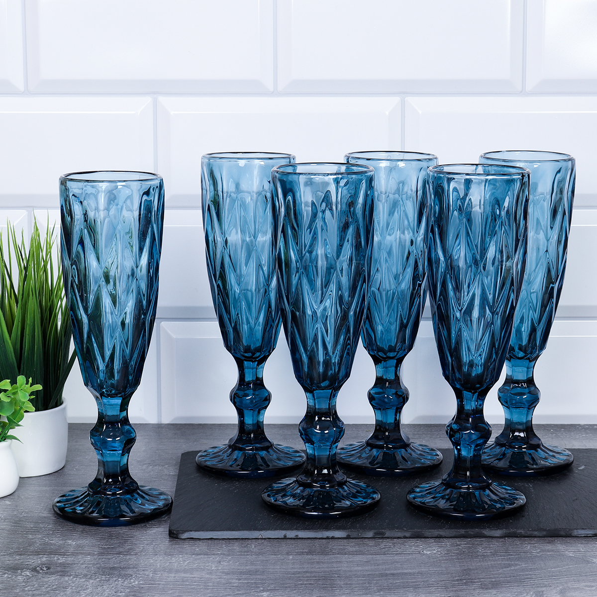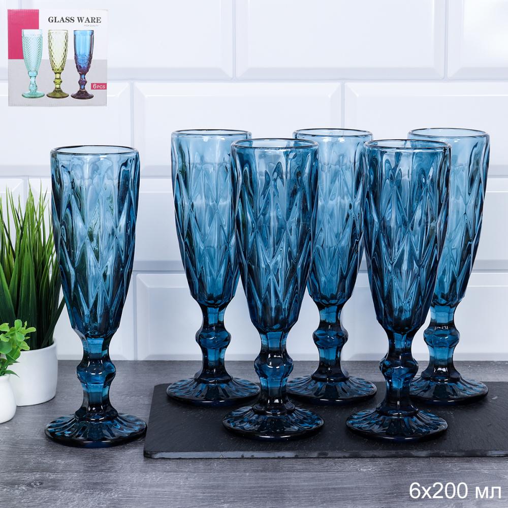 Бокал для шампанского 6 штук 200 мл / KF-036-3 /уп 8/ синий