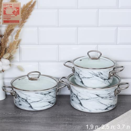 Кастрюли 6 предметов Белый мрамор-1-Элит (белая) /уп 1/ 1,9л2,5л3,7л