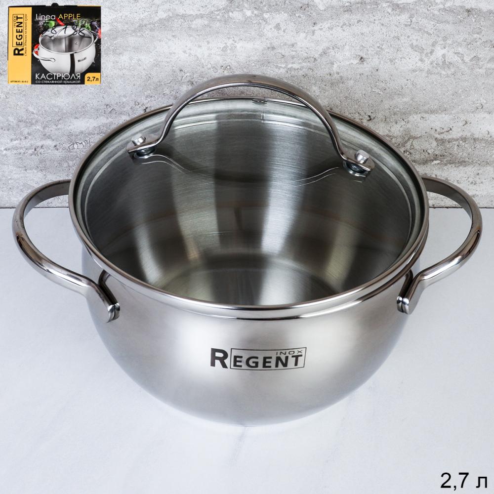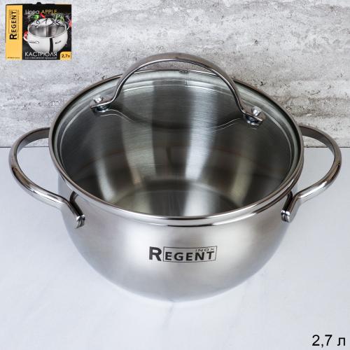 Кастрюля 2,7 л 18х11 см Apple B / 93-B-2 /уп.6/ крышка стекло , зерк.пол. Regent/ Регент