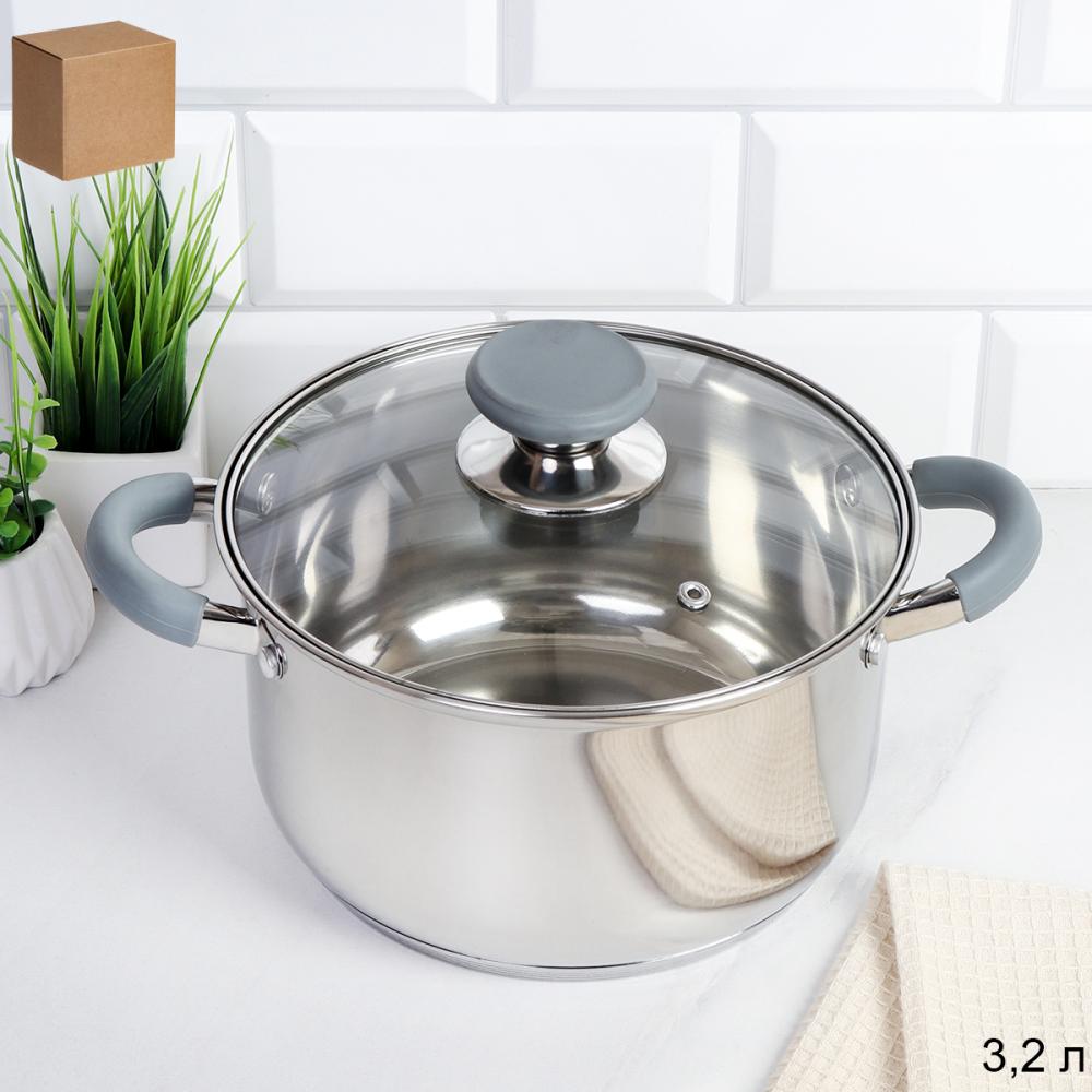 Кастрюля 3,2 л Элиос / LB-S-1106-8B-3,2 /уп 1/ индукция/ ручки с силиконом/ Гофрокороб/ KISIGA