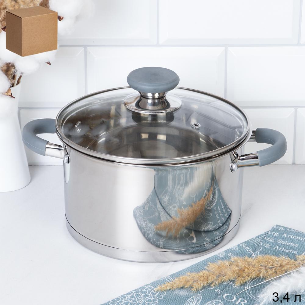 Кастрюля 3,4 л Евро / LB-S-1931B-8C -3,4/уп 1/ индукция/ ручки с силиконом/ Гофрокороб/ КИСИГА/KISIGA