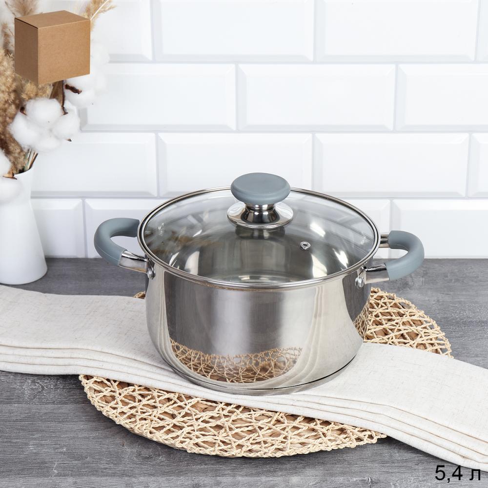 Кастрюля 5,4 л Элиос / LB-S-1106-8B-5,4 /уп 1/ индукция/ ручки с силиконом/ Гофрокороб/ KISIGA
