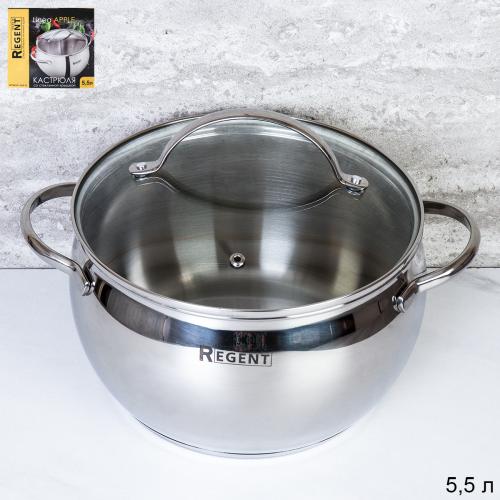 Кастрюля 5.5 л Apple B / 93-B-13 /уп 2/ зеркал.полир. крышка стекло Regent/ Регент