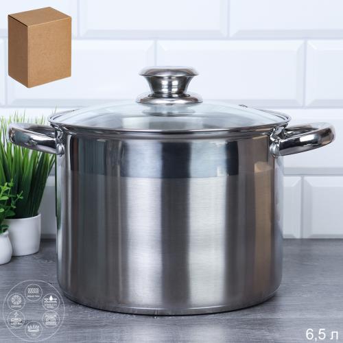 Кастрюля 6,5 л Бульонная Ария / FGLB-6,5 /уп 1/ индукция/круглые ручки/гофрокороб