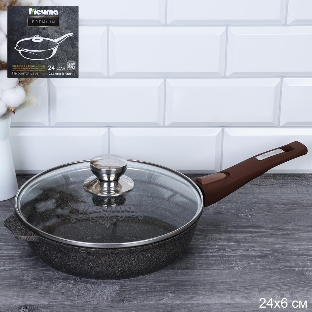 Сковорода 24 см со съемной ручкой и стекл. крышкой АП "Premium" (mokko) / с024902 / Мечта
