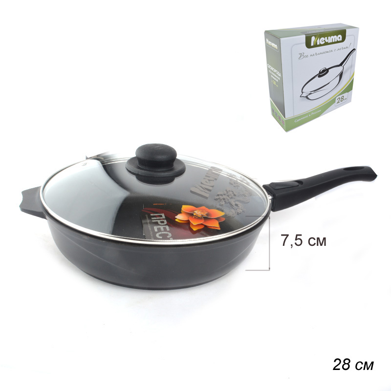 Сковорода 28 см Престиж / С028506 /уп / со съемной ручкой, стеклянной крышкой, 7,5 см