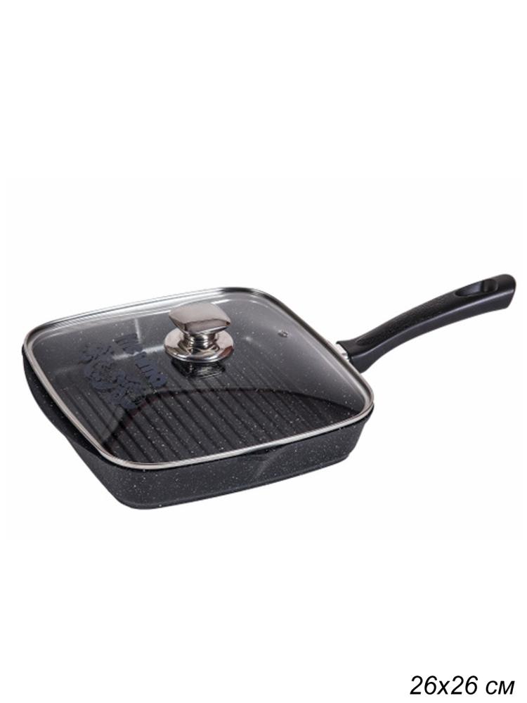 Сковорода-гриль 26 см Гранит star квадратная / С66803 /уп / с несъемной ручкой, стеклянной крышкой, 5,0 см Мечта