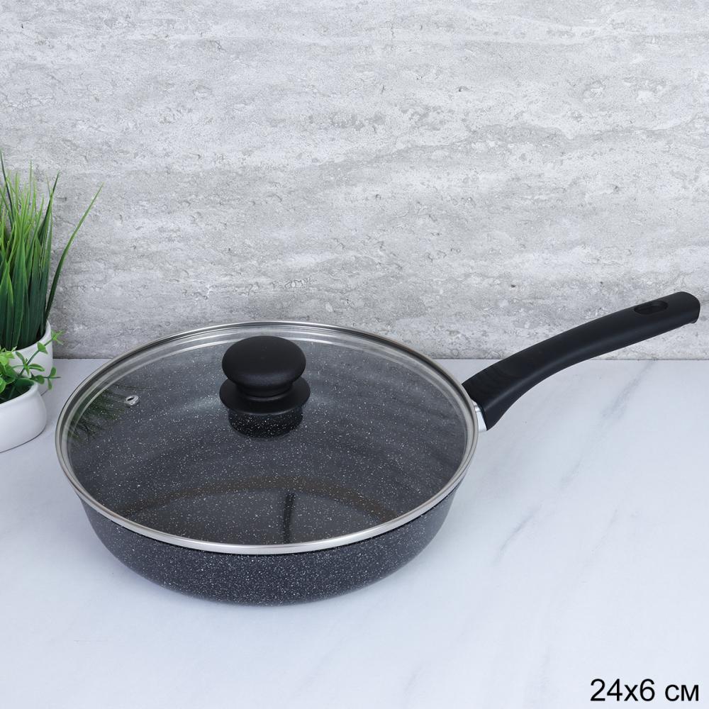 Сковорода с крышкой 24 см Granit Standart / П324-СВ/КР-М /уп 12/ несъемная ручка/Премьер