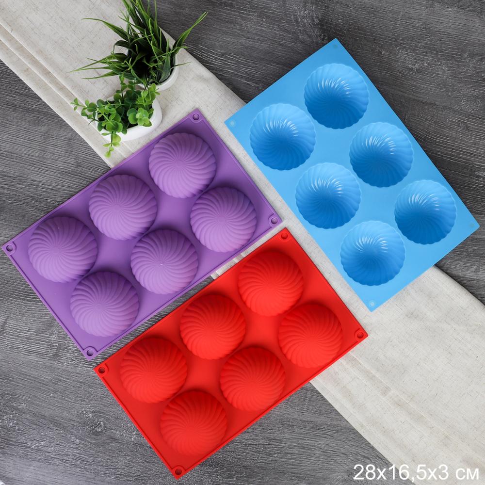 Форма для выпечки 6 ячеек силиконовая Полусфера фактурная 6 см / HL-070 /уп 200/ 28*16,5*3