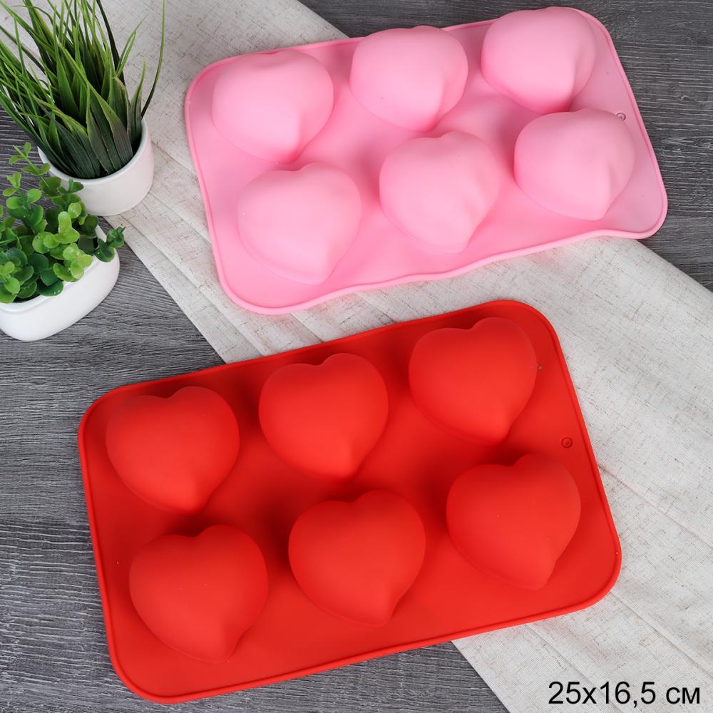 Форма для выпечки 6 ячеек силиконовая Сердце капелька / HL-076 / уп 200/ 0,13/ 26*17*4